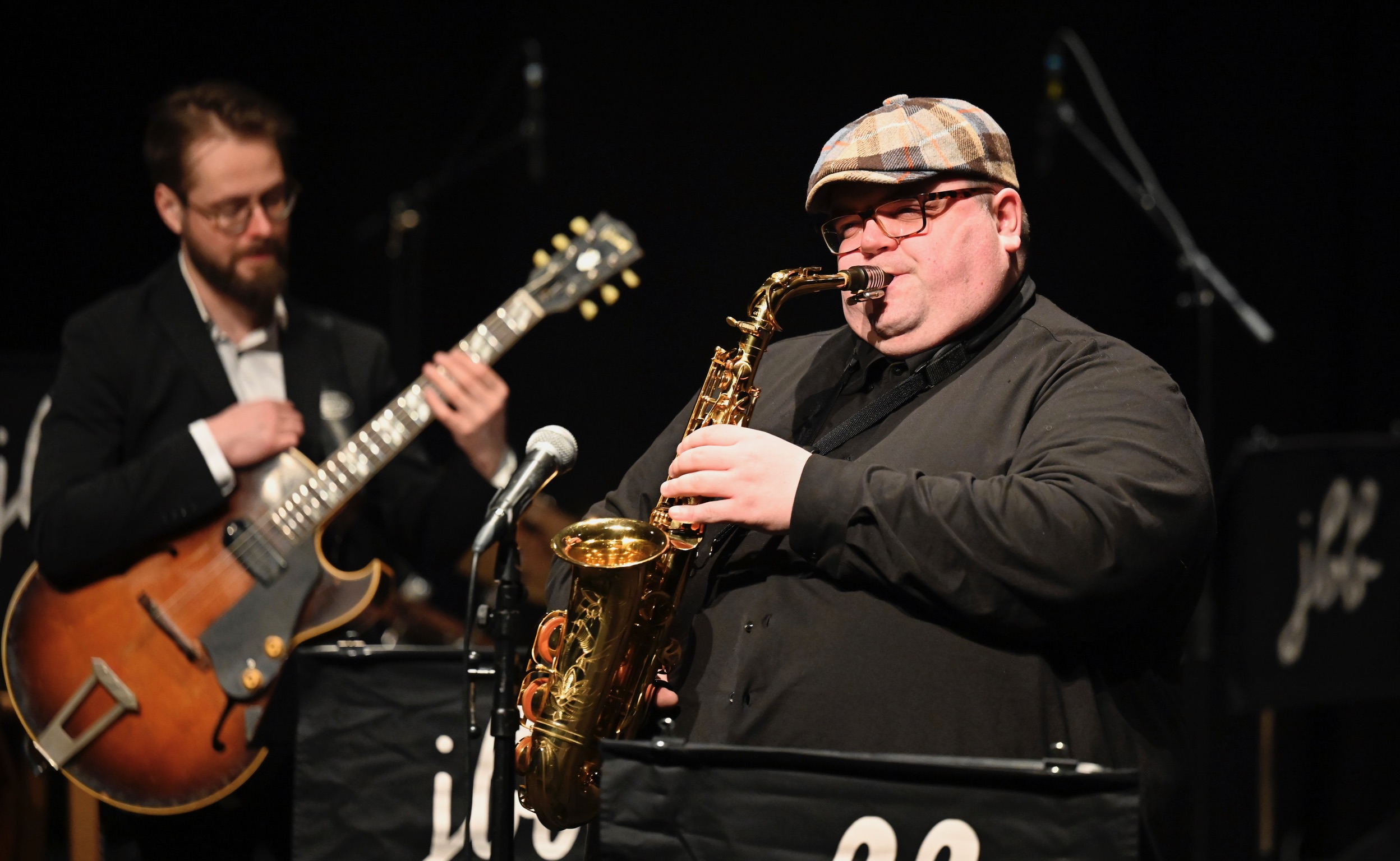 Clayton-proggiksen ykkössolisteiksi oli nostettu saksofonisti Markus Lajunen, jo pitkään orkesterin vakiokokoonpanoon kuulunut muusikko, sekä kitaristi Tuomas Paukku, joka Jazz Jkl Collectiven myötä on varmasti yksi tämän hetken kuulluimpia soitinsolisteja Jyväskylässä.