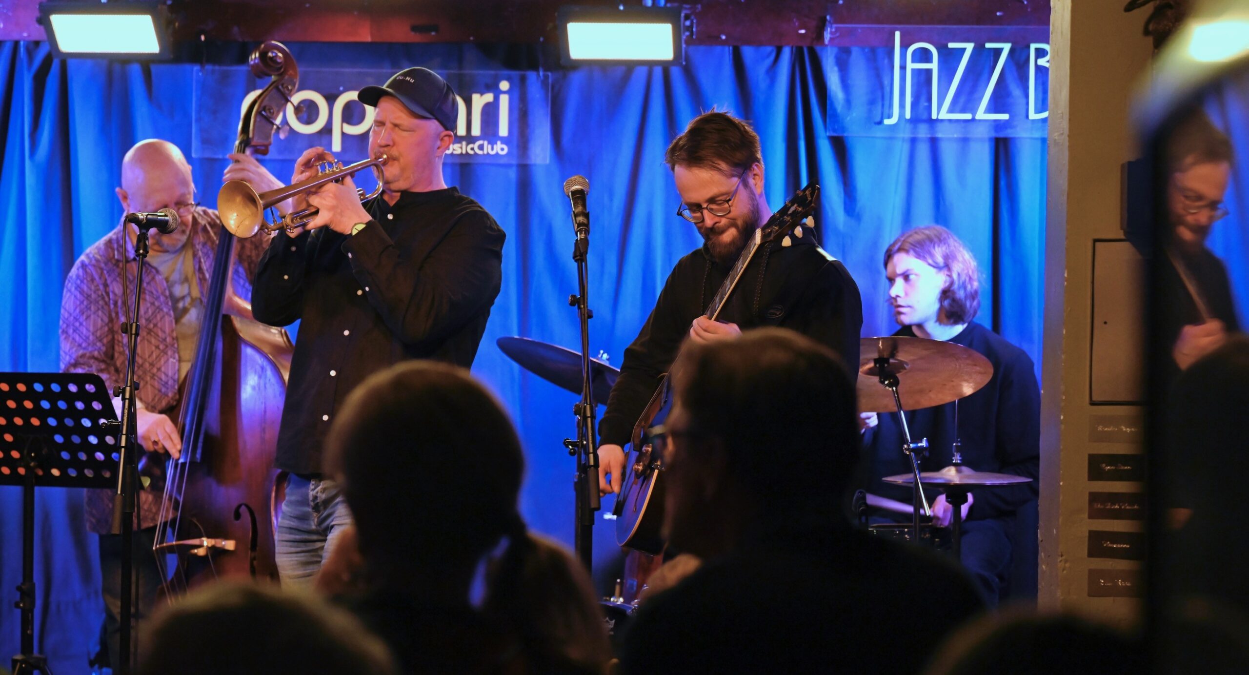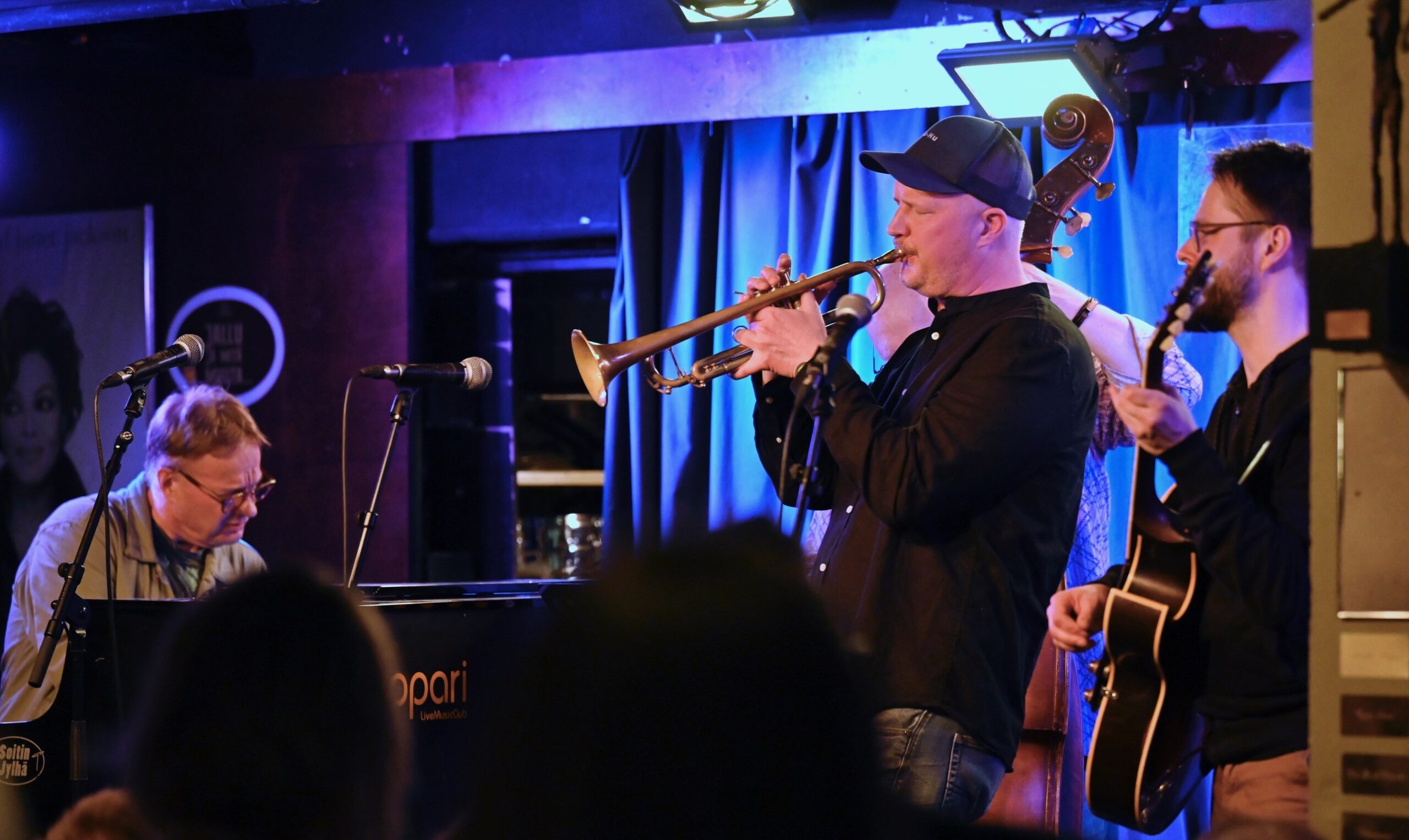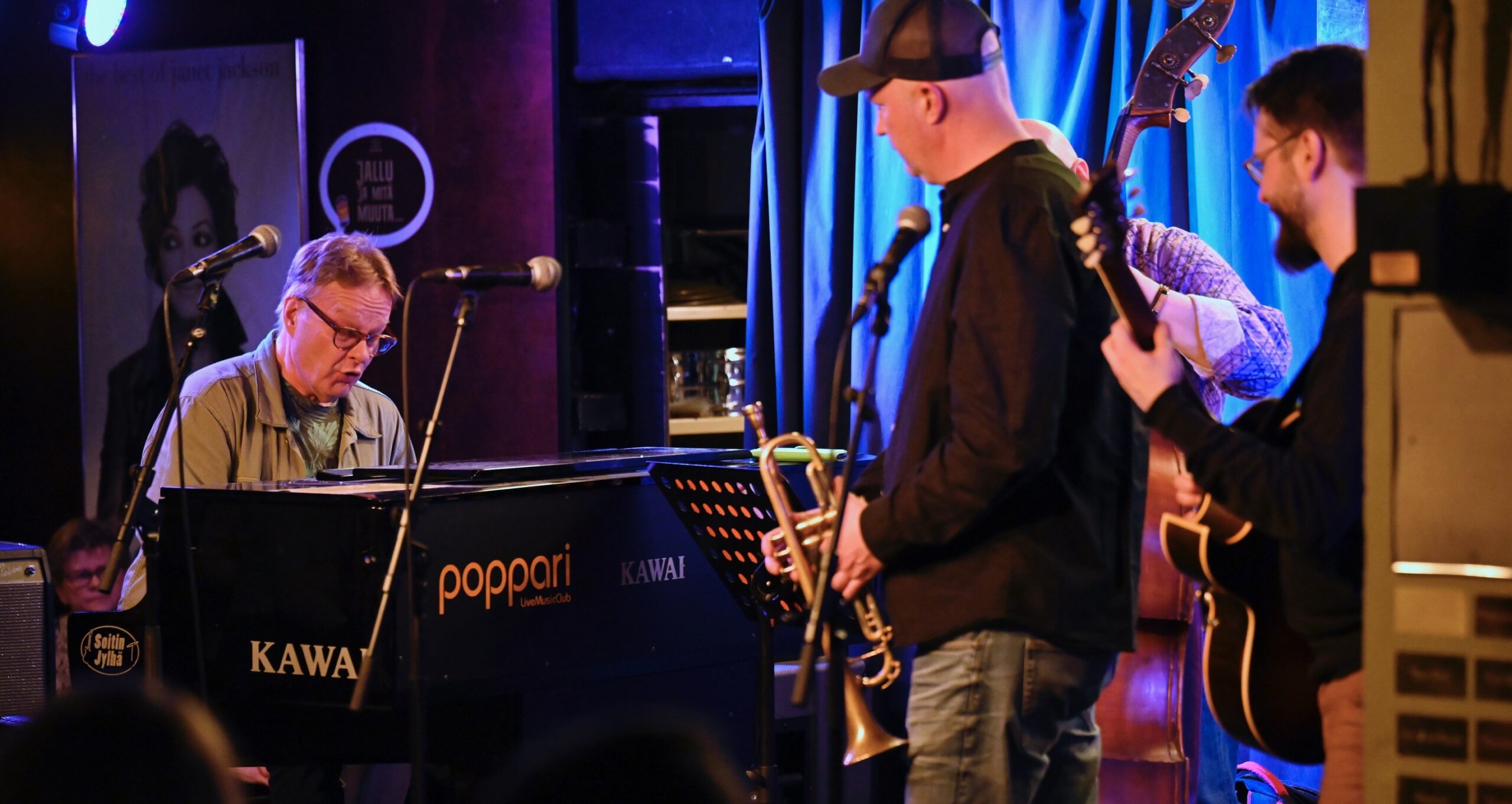 Torstai-ilta Jyväskylässä päättyi Poppariin, jossa Jazz Jkl Collective oli ensin heittänyt yhden setin Mikko Gunu Karjalainen vieraanaan, ja hoiti sitten Gunun johdolla house bandin tehtäviä kun Paviljongissa esiintyneet muusikot ehtivät mukaan jameihin. Aikataulusyistä jamihommista tällä kertaa vain muutama Kalevi Plattosen nappaama kuva.